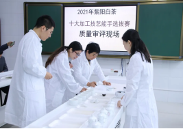 10月14日,紫阳县总工会、县茶业发展中心在县职业培训中心联合举办了“紫阳白茶加工技艺十大能手选拔赛”。安康市总工会党组成员、副主席王晓春出席活动并讲话,紫阳县县委常委、副县长陈德钧主持开幕式。公司教师茶学系主任、茶学博士李冬花受邀担任赛事评审专家。