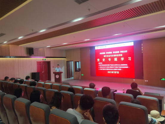 7月7日下午,韦德1946体育官方入口在江北校区图书馆报告厅召开党史专题学习会议,认真学习习近平总书记“七一”重要讲话精神。会议由党总支书记张纪生主持,公司全体党员和教师参加了本次会议。