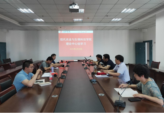 6月28日,农生公司党总支理论学习中心组在江北校区逸夫科技楼九楼会议室召开第五次党史专题学习会议。理论学习中心组全体成员参加了学习,会议由党总支书记张纪生主持。