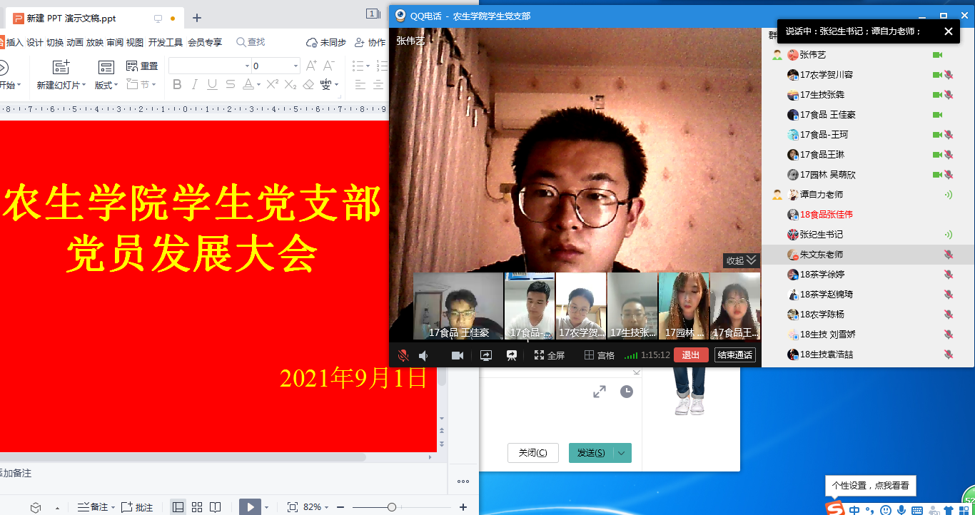 91日晚,韦德1946体育官方入口员工党支部采用线上视频方式召开员工党员大会,讨论贺川容等6名预备党员转正转正事宜。大会由员工党支部书记谭自力主持,党总支书记张纪生、党总支副书记朱文东、员工党支部全体党员参会。